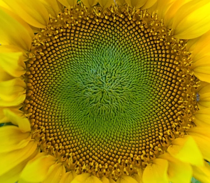 Fibonacci’s famous sequence(0, 1, 1, 2, 3, 5, 8, 13, 21, 34, 55, …) has been linked to many natural phenomena. The arrangement of seeds in sunflowers is one example.